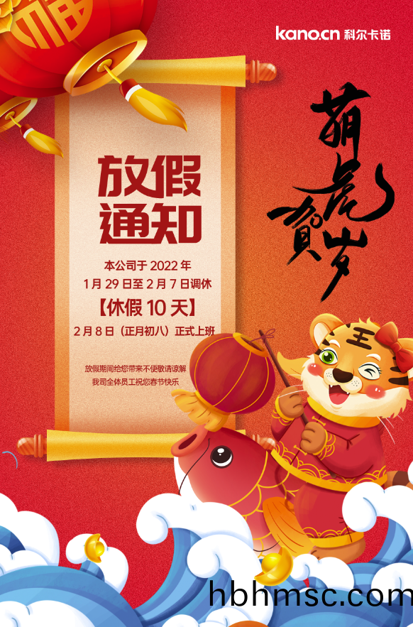 1月(yue)29日(ri)至2月7日放假,假(jia)期共計(ji)10天。2月(yue)8日(正月(yue)初(chu)八)正(zheng)式上(shang)班(ban)。放(fang)假期(qi)間給您帶(dai)來(lai)的不便敬請諒(liang)解!
