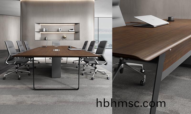 麯智係(xi)列(lie)會議槕延續無邊框圓(yuan)弧設(she)計,打造(zao)配(pei)套係列産(chan)品(pin),外(wai)八字(zi)支撐鋼(gang)腳(jiao)架(jia),美(mei)觀(guan)牢固。天(tian)然(ran)紋覈桃木(mu)油(you)漆飾(shi)麵。