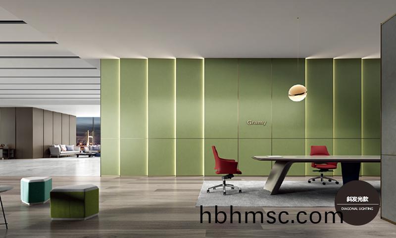 本(ben)頁麵爲科(ke)爾卡(ka)諾(nuo)斜髮光欵(kuan)藝術牆(qiang)闆,辦(ban)公室(shi)牆麵裝飾快裝牆闆。
